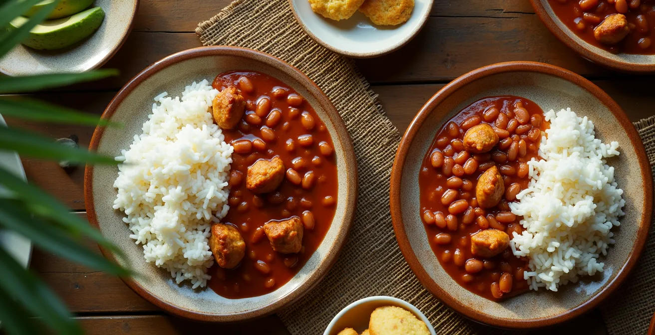A primera vista, «La Bandera» parece una bomba de carbohidratos. Sin embargo, su composición básica es un ejemplo brillante de ingeniería nutricional popular. La combinación de arroz (carbohidrato) y habichuelas (legumbre) crea una proteína completa, similar a la que se encuentra en la carne. Esto significa que incluso en sus versiones más humildes, el plato proporciona la energía y los aminoácidos esenciales para afrontar una jornada de trabajo. La carne, normalmente un guiso sabroso, añade un extra de proteína y hierro.
