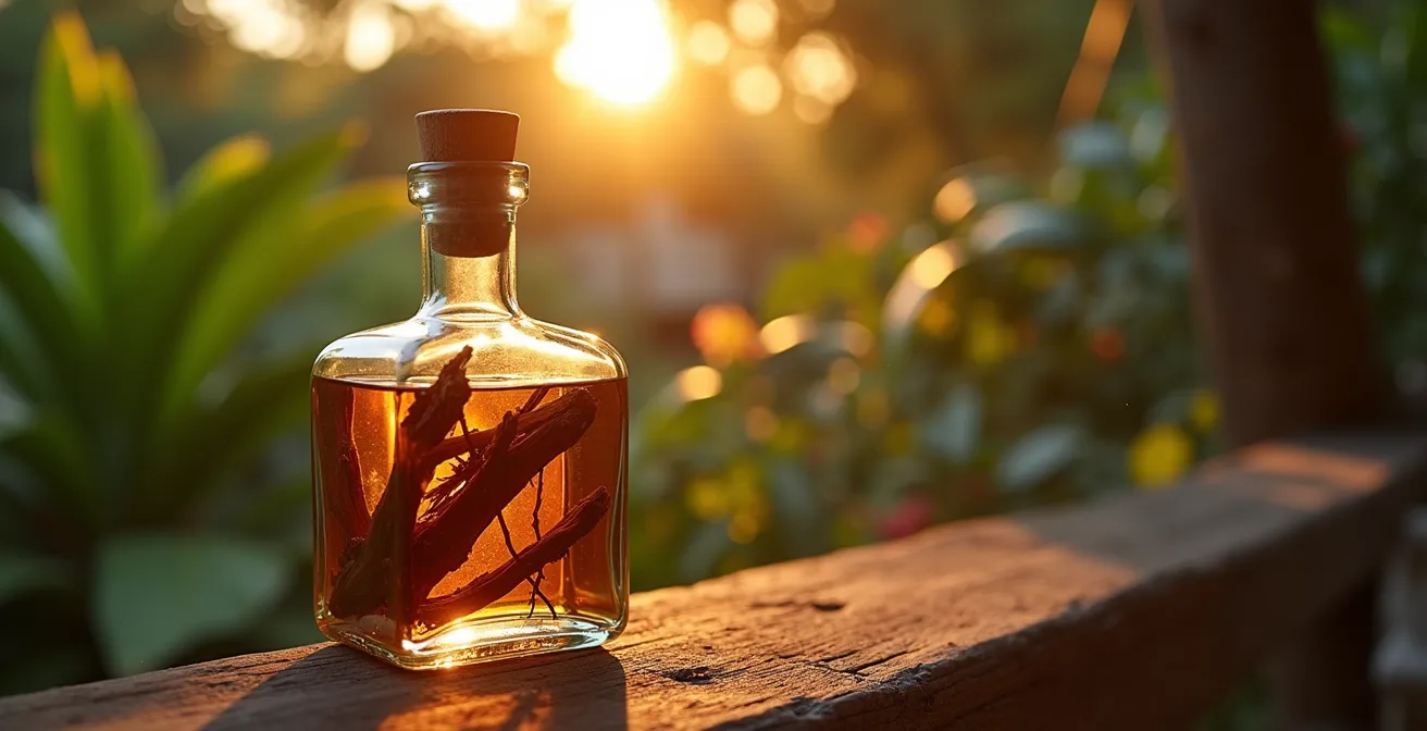 Has vuelto de tu viaje con una botella llena de palos y cortezas. Emocionado, la llenas de ron y te sirves un trago, esperando un néctar exótico. El resultado: un líquido terriblemente amargo y astringente, casi imbebible. Este es el error del principiante. El alma de una buena Mamajuana no reside solo en sus ingredientes, sino en el ritual de preparación, conocido como «curar» la botella. Este proceso es esencial para extraer la amargura de las maderas secas y prepararlas para que liberen sus sabores complejos.
